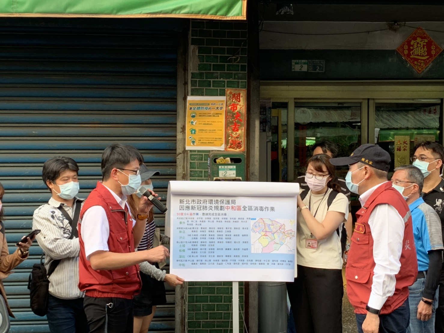 【新北市訊】新冠肺炎疫情升溫,市長侯友宜今(12)日召開因應嚴重特殊傳染性肺炎疫情第131次應變會議暨市政會議,要求各單位以超越二級警戒的態度及標準面對疫情,並於今日再度前往第一線緊盯清消工作,同時要求環保局繼昨日新莊、蘆洲地區進行大規模消毒作業後,今日再針對五股、三重及中、永和等四區同步進行全面清消。