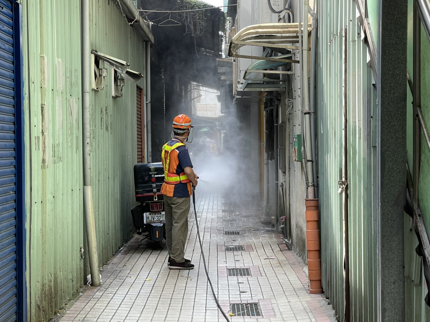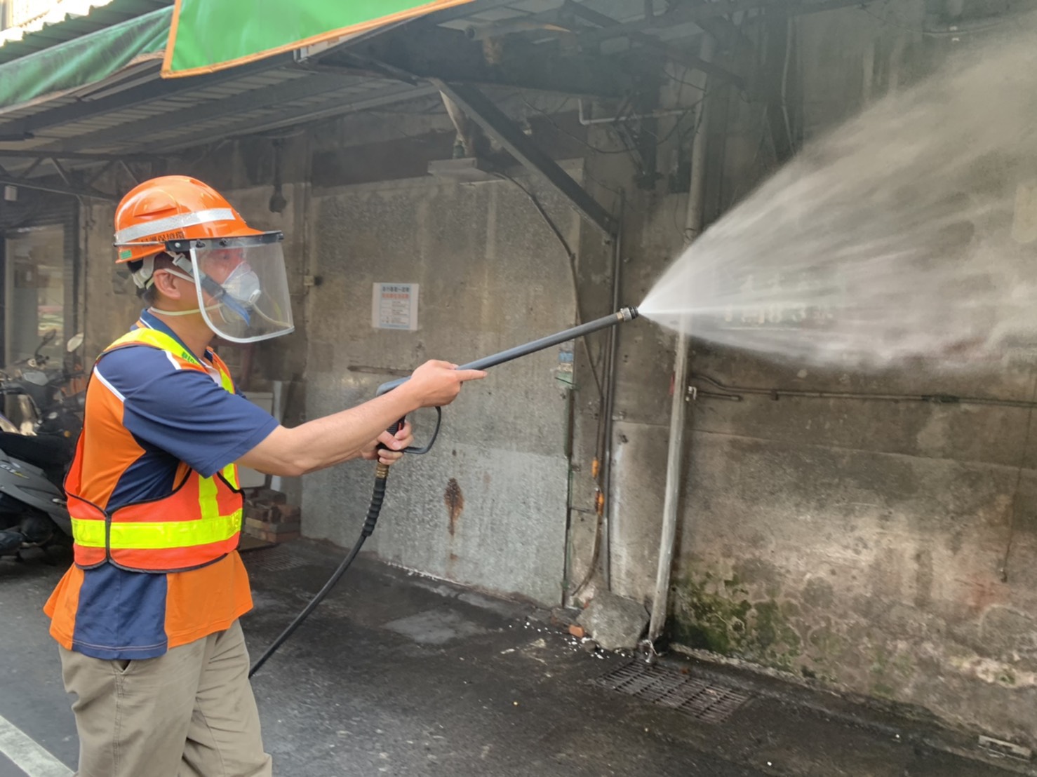 環保局強調,已遵照市長指示,用最高標準落實防疫措施,防疫消毒大隊全數動員清消防堵疫情傳播外,各區清潔隊亦持續執行全市列管的1360處公共區域及曾確診案例足跡周邊等清消作業,務盡一切人力物力來阻隔疫情的傳播。
