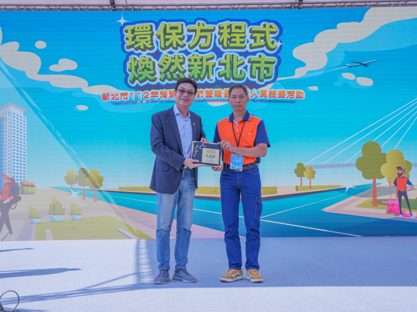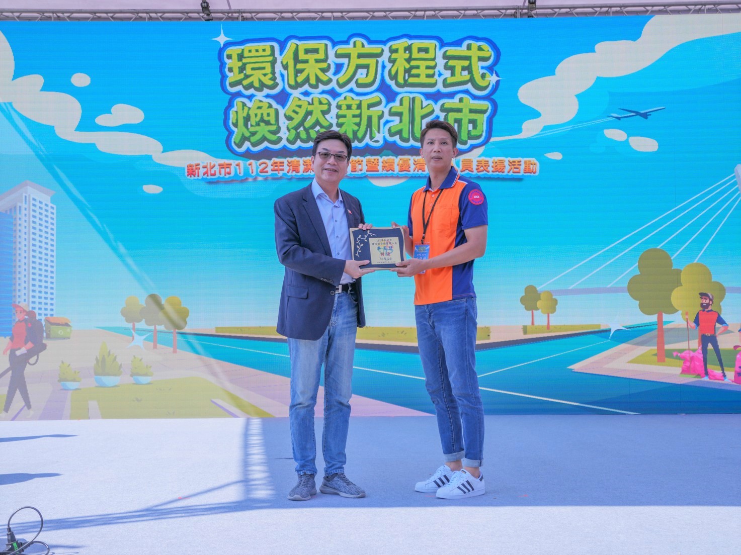 【新北市訊】每年的10月25日是清潔隊員節,為了感謝新北市5千多位清潔隊員一直以來的努力和付出,新北市環保局今(25)日特別在板橋第二運動場舉辦「新北市112年清潔隊員節暨績優清潔人員表揚活動」慶祝。代理市長劉和然副市長親自頒獎表揚106位年度績優清潔人員、職安衛人員及交通安全管理人員,感謝清潔隊員們整年的辛勞及無私地奉獻;環境部薛富盛部長也出席共襄盛舉,並致贈保暖防寒背心;共同將祝福獻給清潔隊員們,並祝賀他們「清潔隊員節快樂」。