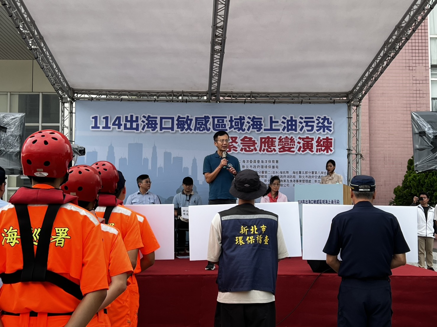 環保局許銘志主任秘書表示,新北市擁有長達145公里的美麗海岸線,蘊含多樣地貌、人文景觀及豐富的自然生態。面對日益嚴峻的海洋污染風險,環保局針對各類潛在災害風險持續進行模擬演練,包含台北港儲槽破壞洩漏、卸油平台管線破裂、遊艇港內船舶漏油、翡翠灣漁船失火油污外洩,及去(113)年的油品和化學品複合的海洋污染應變等。本次的操演不僅是災害應變操演,更象徵市府守護海洋環境、落實生態保育的堅定承諾。