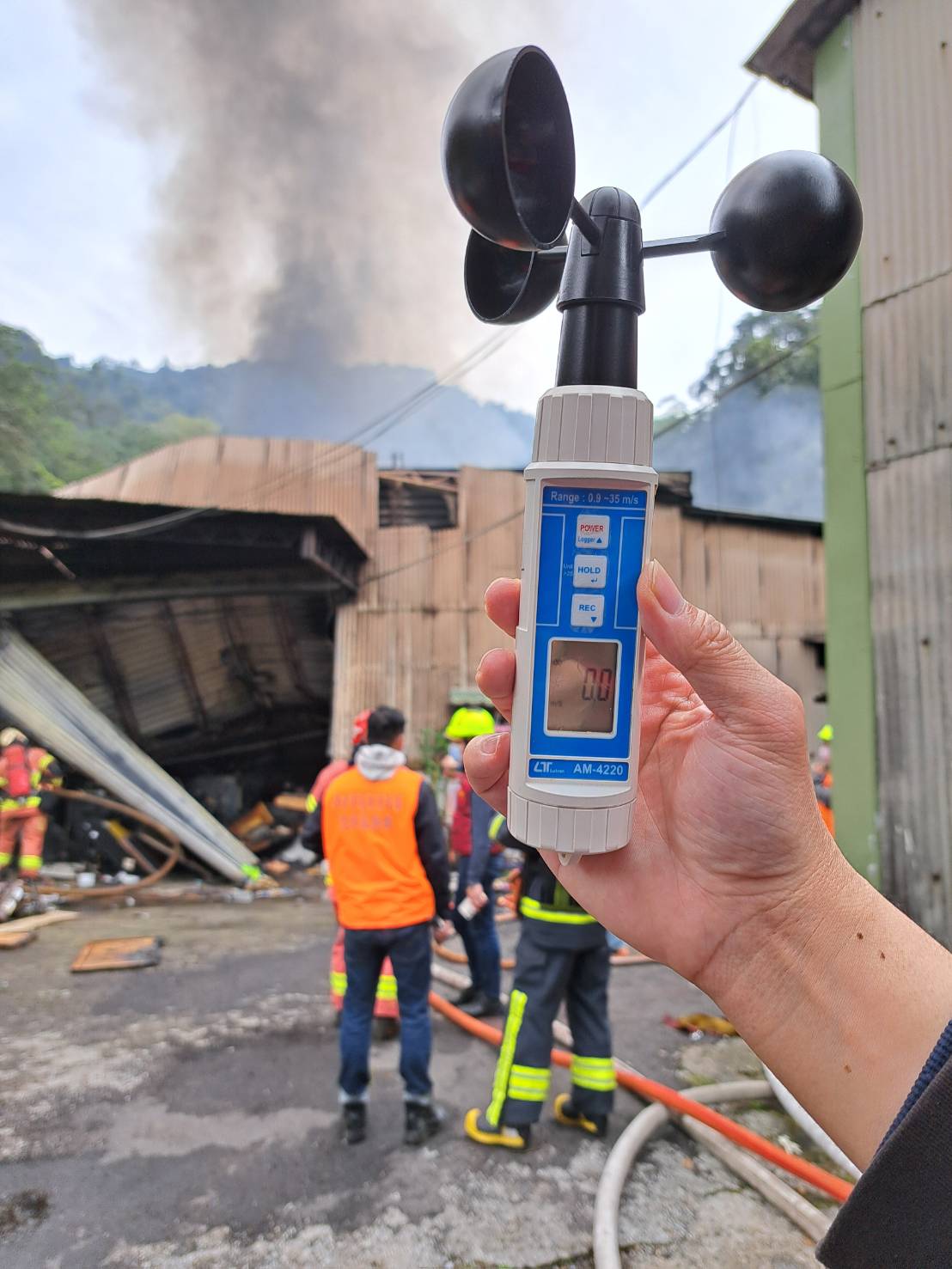 【新北市訊】3月11日9時樹林區光興街工廠火災,新北環保局表示,接到通報後第一時間已到火災現場監測空品,依據手持設備量測風速為0m/s,電子鼻讀值為0,四相氣體偵測儀數值包含二氧化硫=1.2,揮發性有機物=0,氨=0,硫化氫=0。環保局表示,目前現場無濃煙及異味,大氣擴散條件也改善,環保局將持續監控空品變化,請民眾放心。