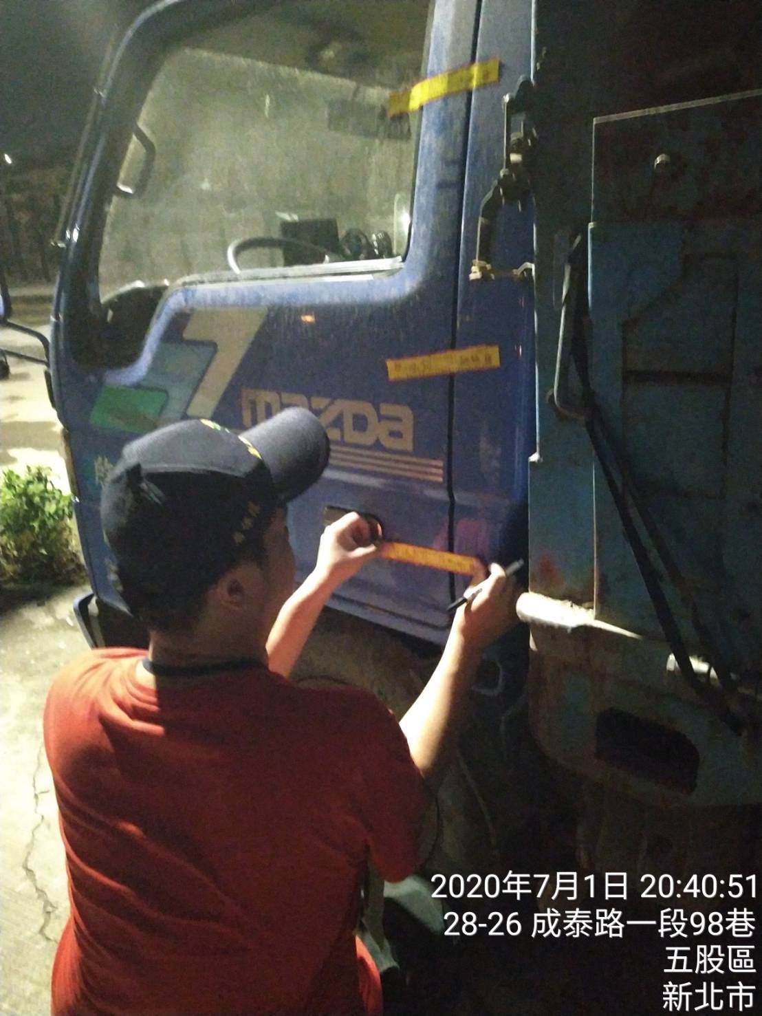 重案組1日晚上6時接獲蘆洲分局通報,五股區成泰路一段98巷20-20號附近查獲有貨車將廢棄物載運至該址隱密處,再由挖土機夾至斜坡下棄置。重案組到場後,地主王嫌矢口否認,辯稱其從事該址廢棄物拆除整理工作,絕無從他處載運廢棄物至該址非法棄置的行為,且由其雇來的2名貨車及挖土機司機亦支吾其詞。