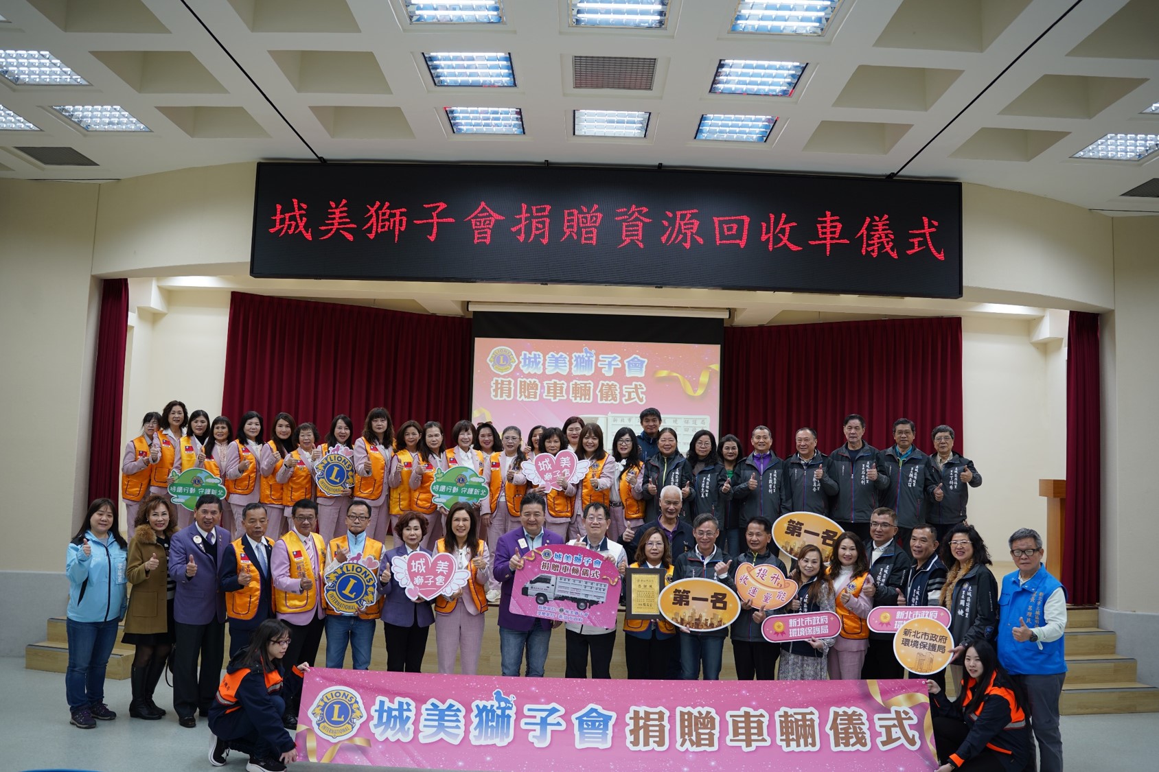 【新北市訊】為協助提升基層清潔作業效能與資源回收量能,國際獅子會300B 2區新北市城美獅子會秉持「服務社會、回饋地方」精神,今(13)日捐贈新北市環保局土城區清潔隊1輛2.7噸資源回收車,在市議員林金結的積極促成下,已是獅子會捐贈給環保局的第4輛資源回收車,展現了關懷地方、支持第一線清潔同仁再添清運利器。