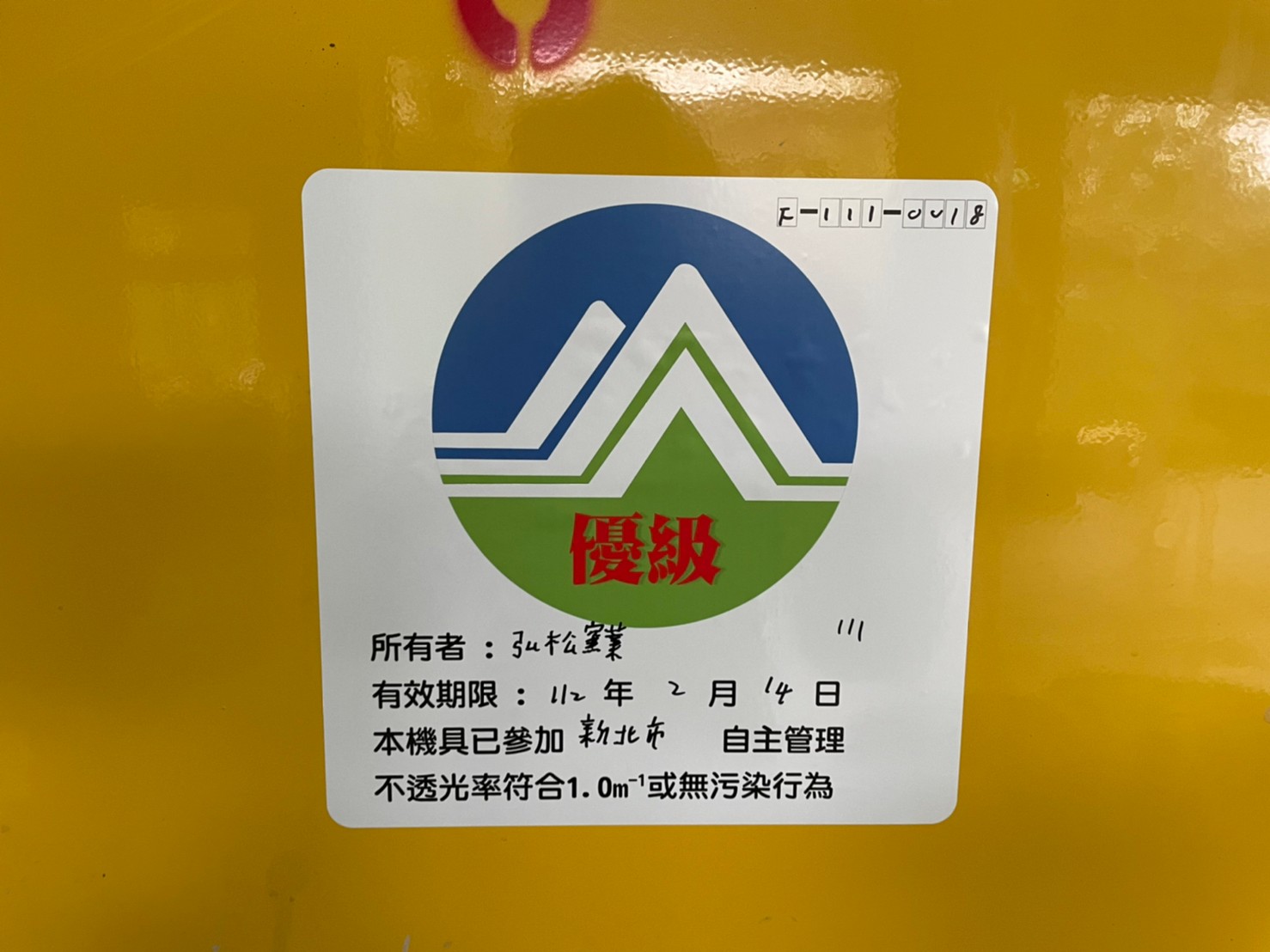 局長程大維表示,機齡老舊或疏於保養的柴油施工機具,易於運轉時排放黑煙廢氣,不僅造成環境品質惡化,更提高民眾健康危害風險。為鼓勵業者自主性落實維修保養,確保引擎及排氣系統處於良好操作狀態,避免排放黑煙,環保局推動施工機具排煙檢測分級標章,除持續追蹤每年度既有取得「優級標章」之機具,並針對新進機具進行排煙檢測,核發標章。