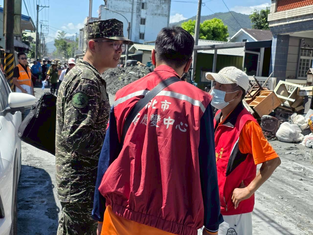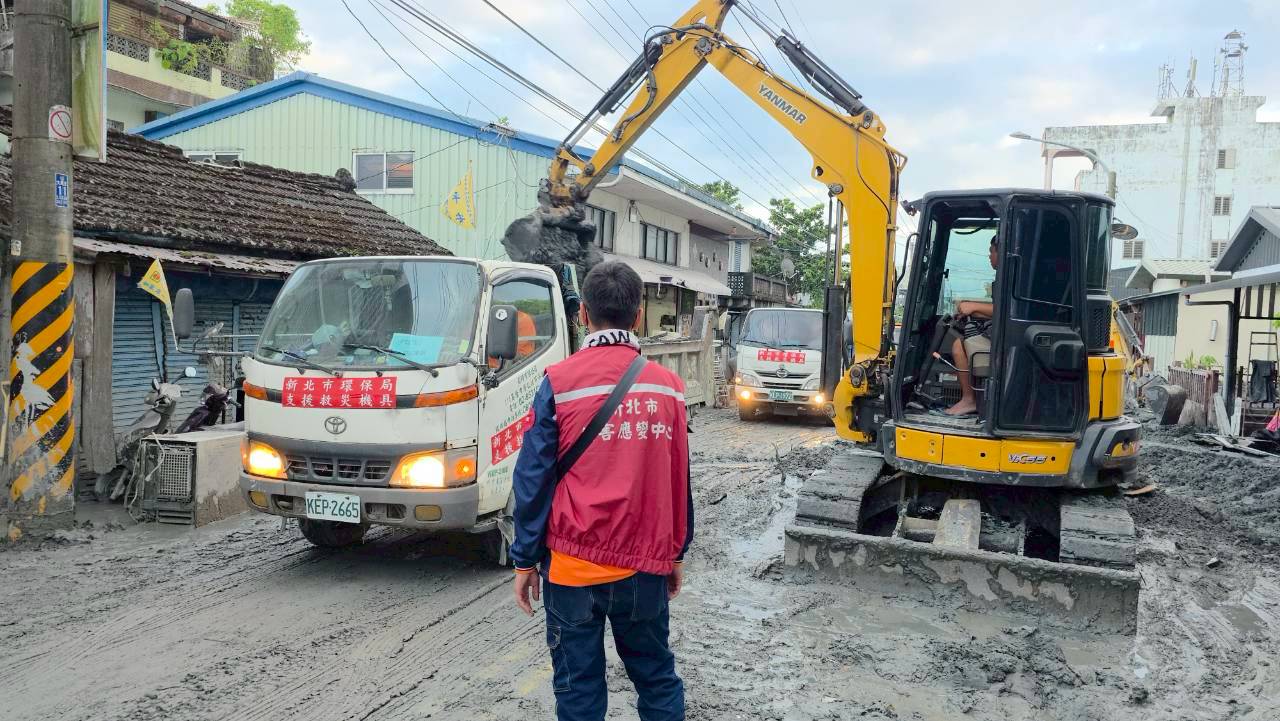 環保局說明,為因應天災後環境復原工作需求,新北市環保局每年訂定「天然災害重機具租賃開口契約」,這次支援花蓮由蘆洲區清潔隊朱弘光隊長及中和區清潔隊鄭忠豪分隊長親自帶隊與開口合約協力廠商前往,20組機具及人力第一天抵達時,雖已是下午時段,但所有人員立刻上線,從晚間7點加班工作到近深夜12點,支援人員和協力廠商全力以赴一起投入清理作業,能多做一小時就多奉獻一小時;另27日起則依據花蓮縣政府分配範圍,執行武昌街、中山路及敦厚路等路段,主要清理淤泥、巨大家具及廢棄物等,並與不同單位,包含國軍、自發性民眾互相搭配合力清理,如有2位來自臺南及高雄的民眾自發性開著怪手到現場,全程與新北支援車輛協力合作,ㄧ個挖土ㄧ個載運,加速清理速度,心無懸念協助災民復原環境。