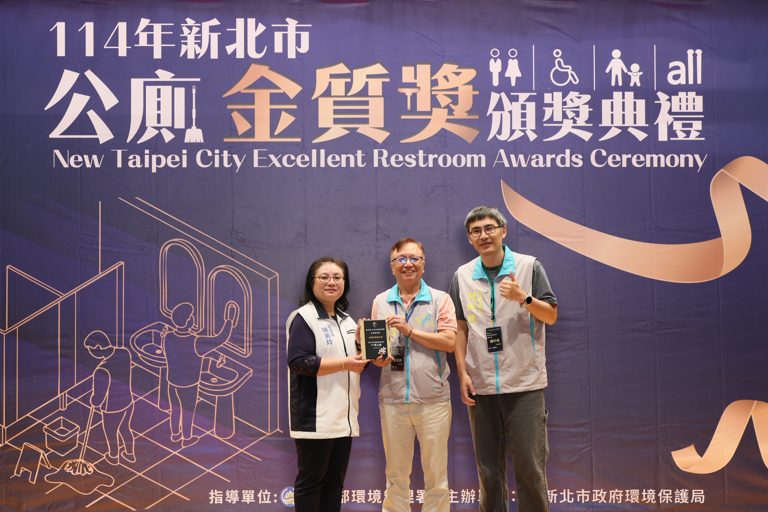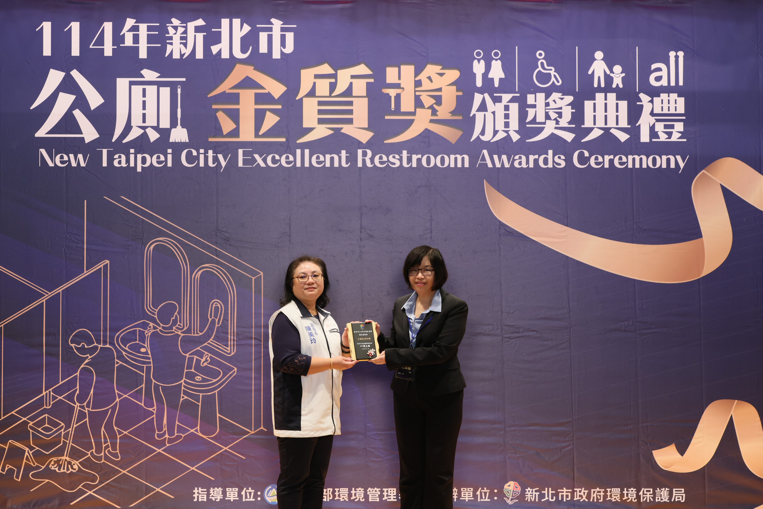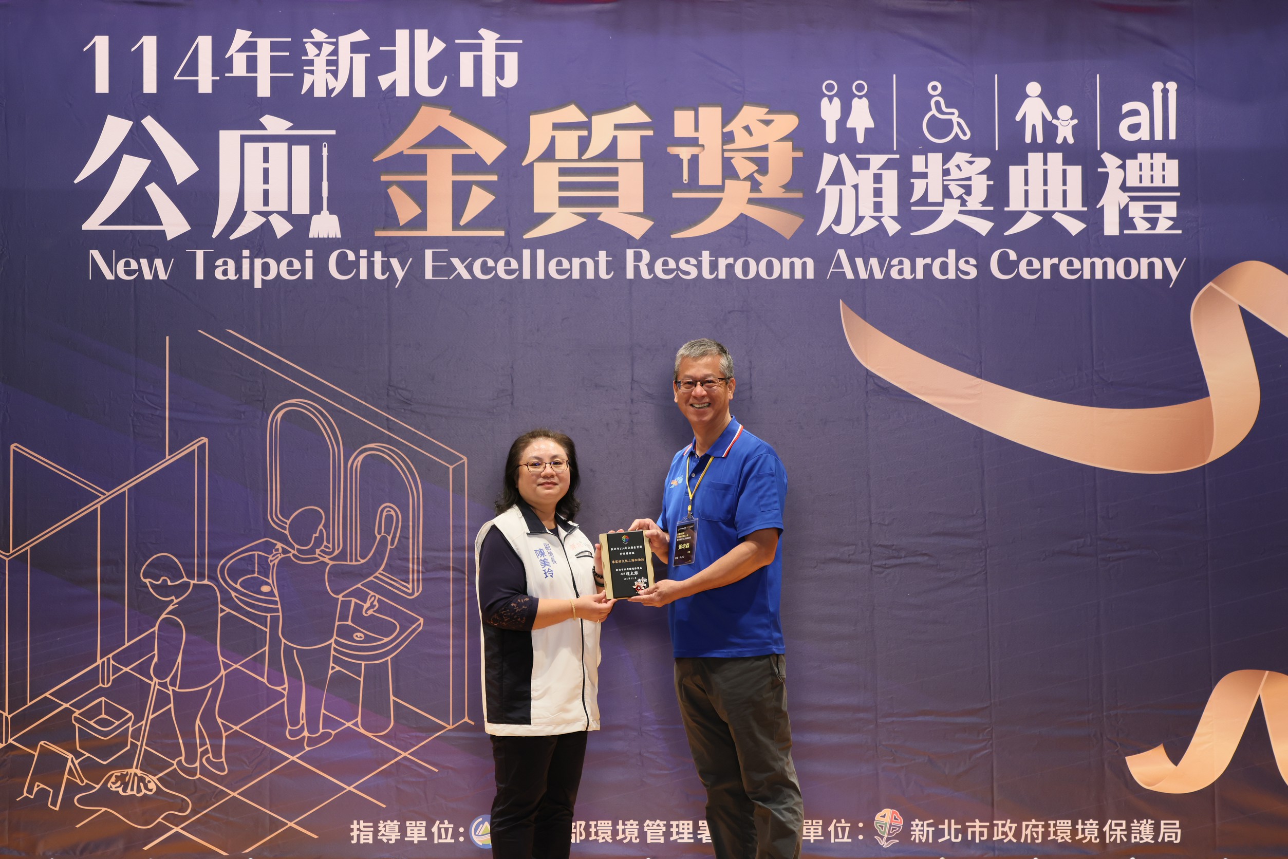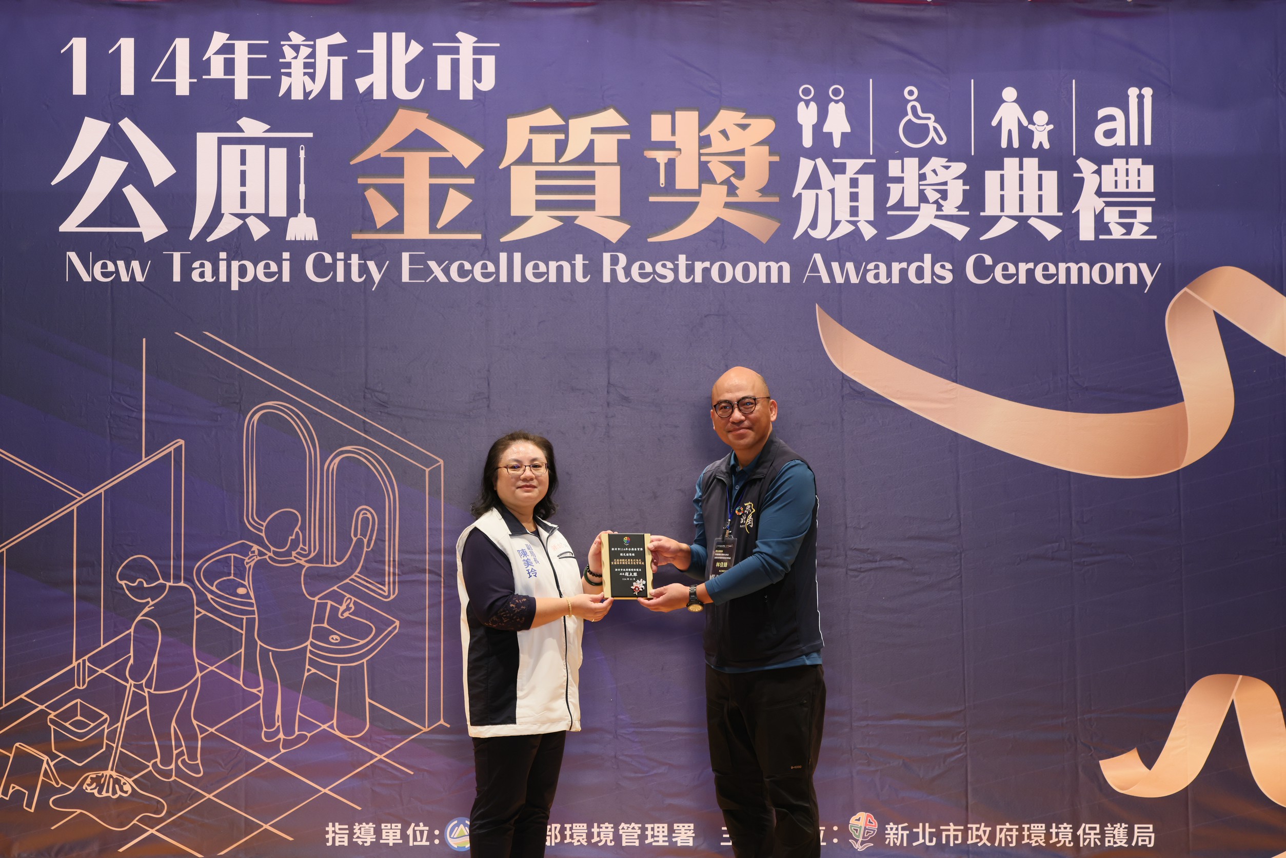 【新北市訊】走進乾淨明亮、舒適友善的公廁,更是展現城市最貼心溫度的重要指標!為感謝各公廁管理單位與清潔人員長期維護如廁環境,新北市環保局今(4)日舉辦「114年公廁金質獎」頒獎典禮。副局長陳美玲親自表揚80處金質公廁、8處永續公廁及21位績優清潔人員,肯定大家為打造乾淨、舒適、友善公廁所付出的努力與用心。