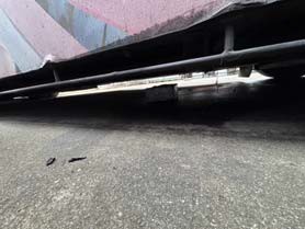 稽查員隨即進場稽查,發現場內逕流廢水排入的側溝有油污殘留,經詢問現場人員表示,當日稍早場內有 1 輛公車疑似管線老舊加上天寒氣溫低使得油 管劣化洩漏柴油,現場人員以容器緊急承接大部分洩漏的柴油,事後清洗漏油 地面時,殘留油花藉由側溝流至河川。稽查員秉持勿枉勿縱,以示蹤劑確認該股水流的流向,經核實確認為本案油污來源,於是當場告發,並命該公司立刻改善。