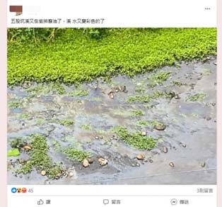 | 民眾於臉書社團我是五股人貼文表示五股坑溪有偷排廢油情形,環保局立即派員前往溯源稽查 | 五股坑溪油污污染情形 |