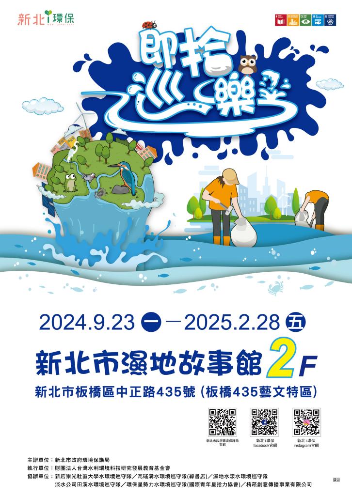 | 1.本次特展主題為「即拾.巡樂」,展現新北市水環境巡守隊的過往努力及未來展望 | 2.展期自9月23日起至114年2月28日,免費入場 |