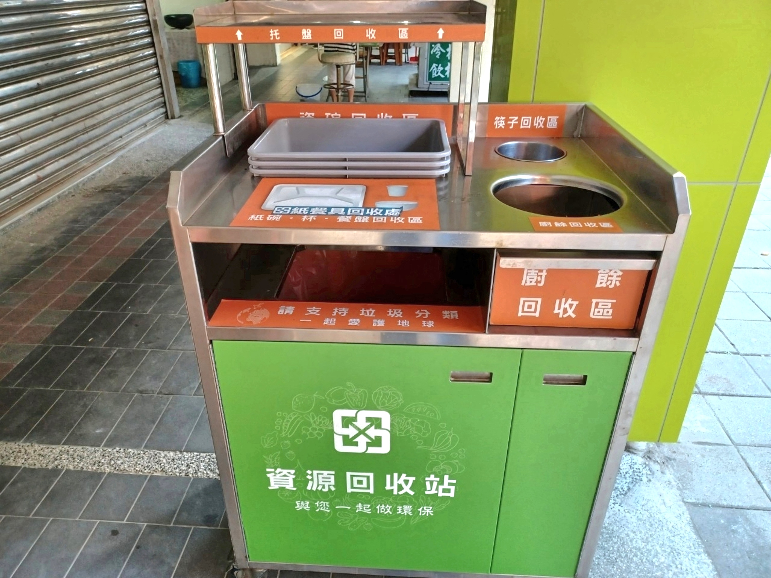 | 設置可分類、堆疊的回收設施。 | 用餐完畢確實完成「清、分、疊」三步驟。 |