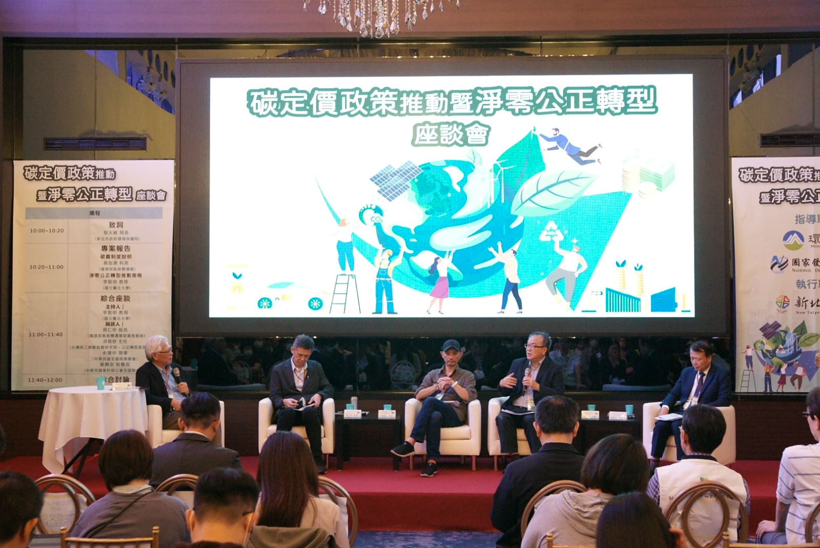 此外,考量碳費對不同產業、不同規模之衝擊影響程度不同;其開徵後,還可能對各行業別的勞工及消費者帶來間接之衝擊,因此本場活動,除邀請臺北大學教授暨淨零促轉服務團團長李堅明教授進行「淨零公正轉型推動策略」專案報告,同時也以主持人身份,與氣候變遷署周仁申組長、台灣勞工陣線協會洪敬舒主任、中華民國全國商業總會余建中理事、中華民國會計師公會全國聯合會劉興宗秘書長進行綜合座談。