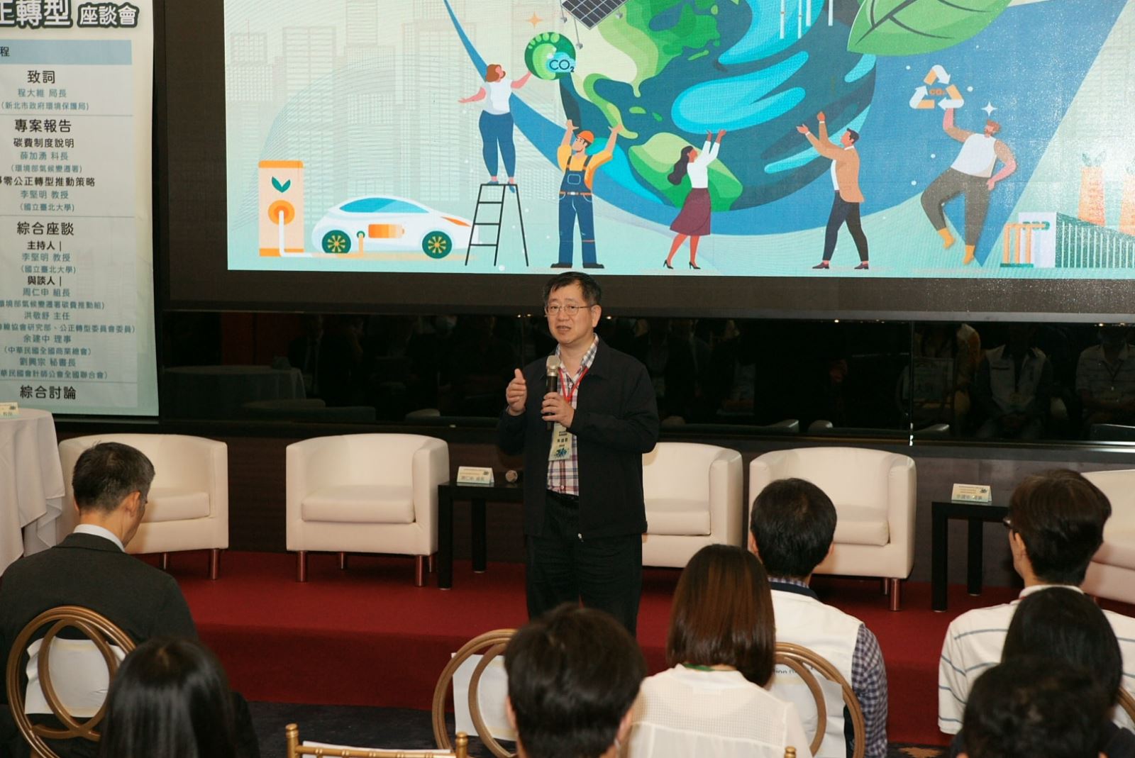 環保副局長朱益君表示,目前碳定價已成國際趨勢,產業及社會各界仍憂心碳費課徵帶來的衝擊。新北市政府始終積極推動轉型,致力協助各界適應變革中的挑戰,自2019年完成「燃煤鍋爐退場」、「瀝青業燃料油改氣」及2022年完成「燃煤汽電共生機組退場」等3項能源轉型關鍵政策,達成無煤工業城市目標,於2022年發布《新北市2050淨零路徑暨氣候行動白皮書》,將公正轉型納入施政藍圖中,並將公正轉型精神制度化於自治條例,同時透過與臺北聯合大學系統成立的「新北市輕推淨零影響力平台」及「淨零促轉服務團」,集結產官學研資源,推動人才培育並推廣解決方案,運作提升各方量能,力求淨零轉型過程中不遺漏任何一人。