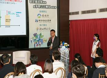 | 環境部氣候變遷署薛加湧科長分享碳費制度 | 國立臺北大學李堅明教授分享淨零公正轉型的推動策略 |