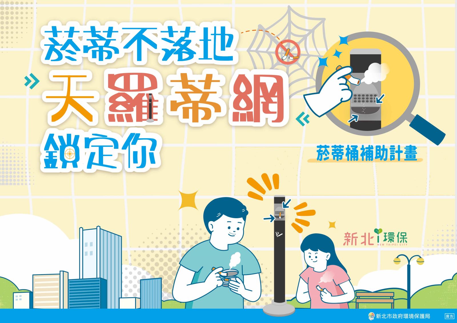 為了應對亂丟菸蒂的問題,新北環保局率全國之先於110年3月依據前環境保護署之「違反廢棄物清理法罰鍰額度裁罰準則」,加重亂丟煙蒂罰鍰,從新臺幣1,200元提高至新臺幣3,600元。雖然推動之初引起癮君子的反彈,但後續台北市、台中市及基隆市亦跟進調高。另外環保局也發現民眾檢舉違反廢清法之案件也是以亂丟菸蒂為最多,112年共有275件,約占全部檢舉案件的13.43%,為獎勵檢舉人,並編列檢舉獎金,獎勵核發比例為實收罰鍰金額10%。期待民眾與環保局共同合作,佈下天羅「蒂」網,讓菸蒂無所遁形。
