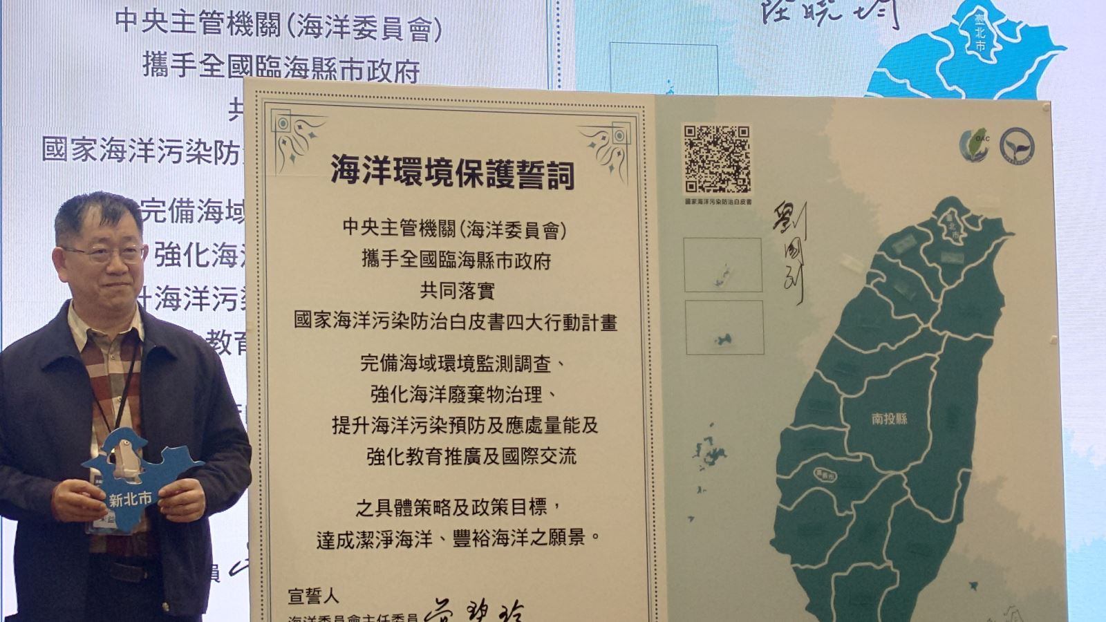 為響應114年世界地球日主題「Our power, Our planet(地球力)」,於114年4月22日頒獎典禮特別由副局長朱益君代表新北市環保局與中央共同宣誓守護海洋環境,持續積極配合執行「國家海洋污染防治白皮書」四大行動計畫,包括:完備海域環境監測調查、強化海洋廢棄物治理、提升污染預防與應處能力及強化教育推廣,朝「潔淨海洋」的願景邁進。水質保護科科長邱庭緯也於會中分享新北市的海洋環境管理經驗,盼與各縣市交流合作,共同提升全國海洋環境保護量能。