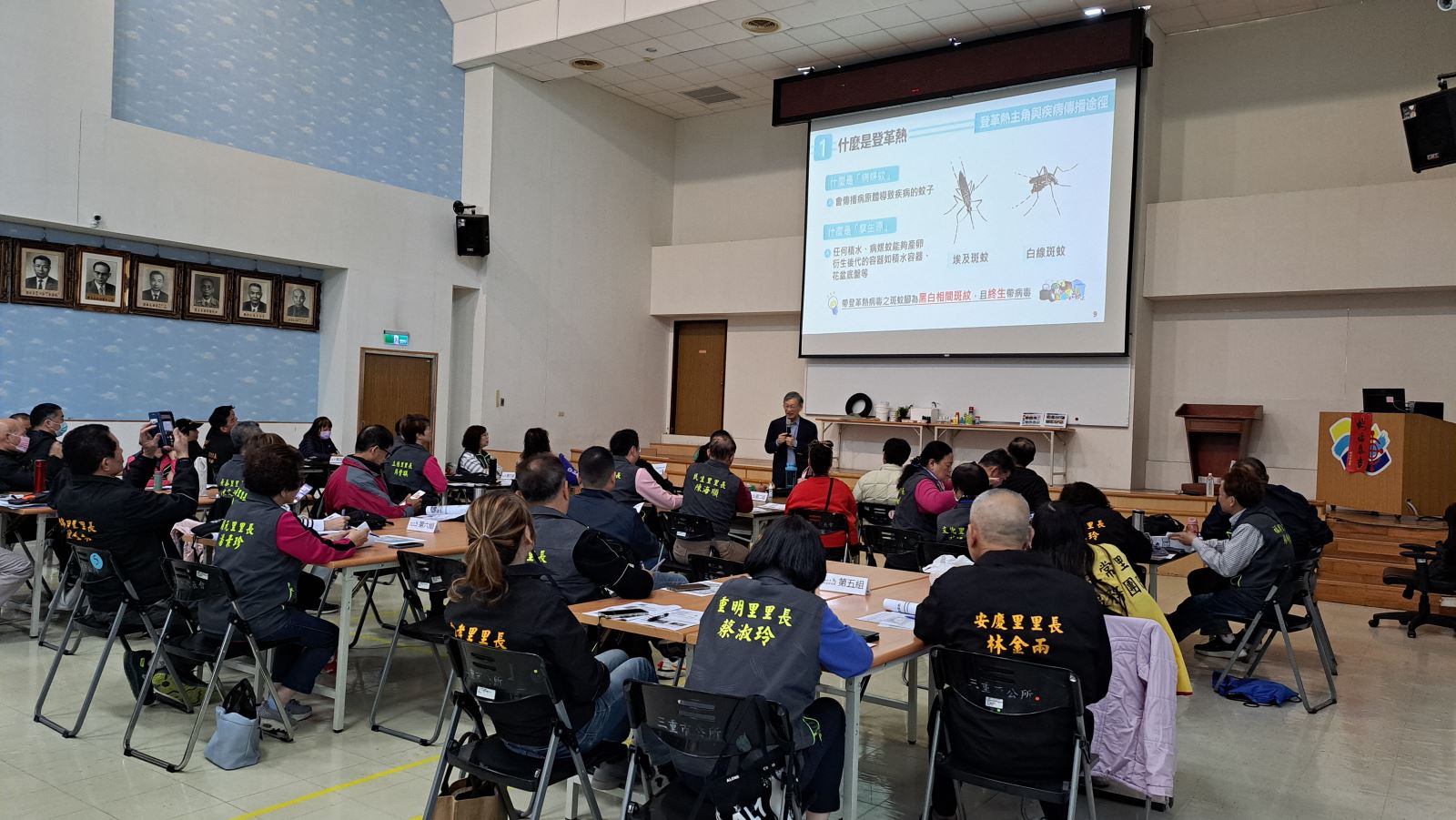 為有效防治登革熱並提升民眾的防蚊防疫意識,新北市環保局自105年起積極推動「社區防蚊師」培訓計畫,以里長為主要對象進行授課,實現「一里一防蚊師」的目標。114年進一步擴大第一線防治量能,首次開設「登革熱防疫專班」,吸引社區管委會代表、市民朋友及學生踴躍報名,共同清除孳生源、守護環境清潔。