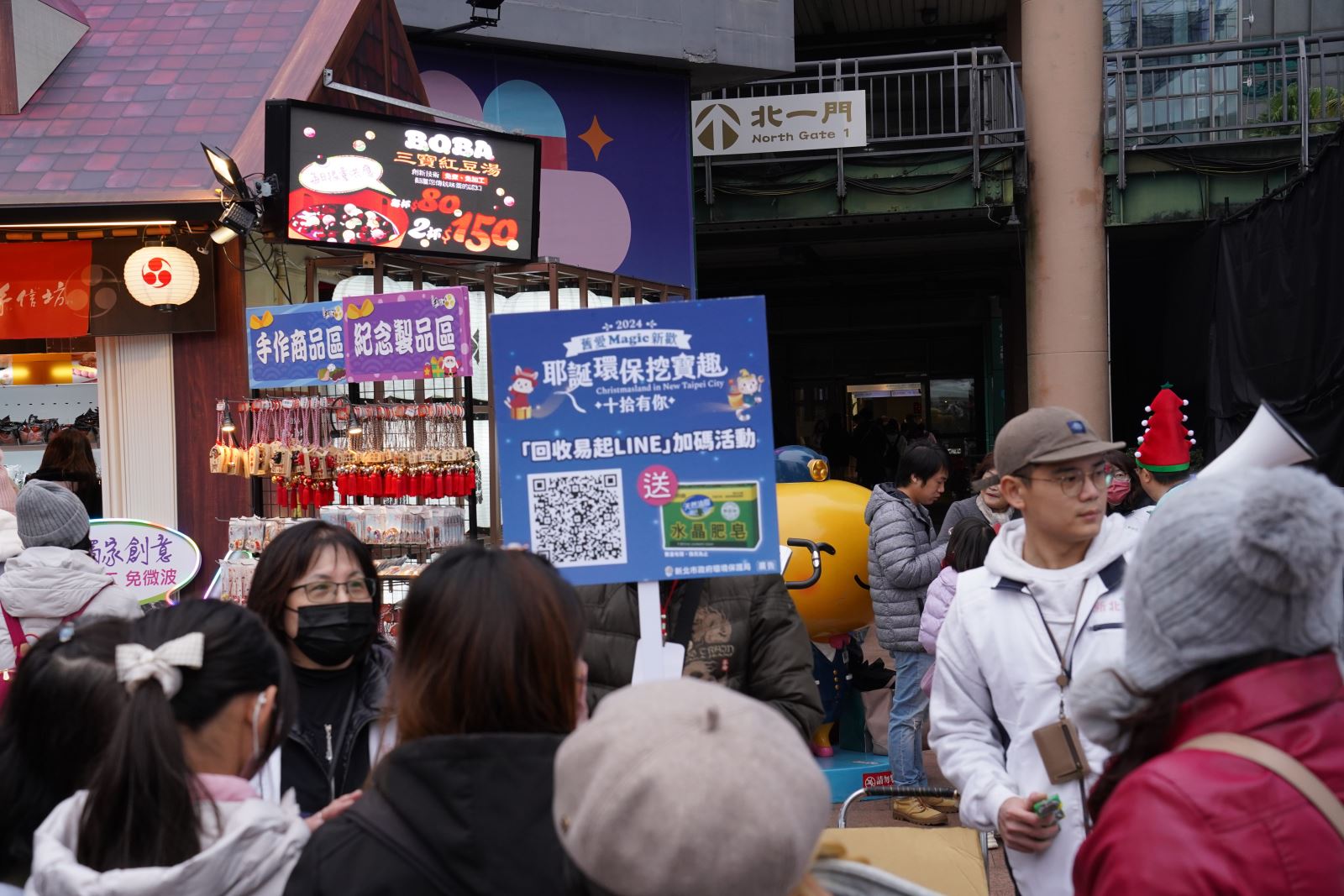 除了義賣及表演活動,許多民眾也與首度在公開場合亮相的新北環保局形象大使「寶吉」一同體驗「回收易起LINE」加碼任務,限量1,000個水晶肥皂一搶而空!「新北市回收物品易查通」推廣活動至今已超過5,000人加入,且於113年12月12日至114年1月2日止,只要加入「新北市回收物品易查通」LINE帳號,並於LINE群組裡輸入任一回收物品名稱,截圖提問及回覆畫面填寫相關表單,就有機會抽中600元郵政禮券及100元家樂福禮券,也歡迎民眾一同加入「新北市回收物品易查通」LINE帳號。