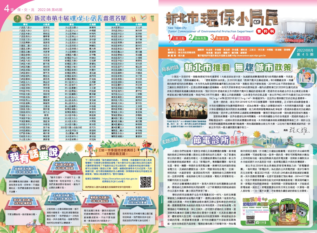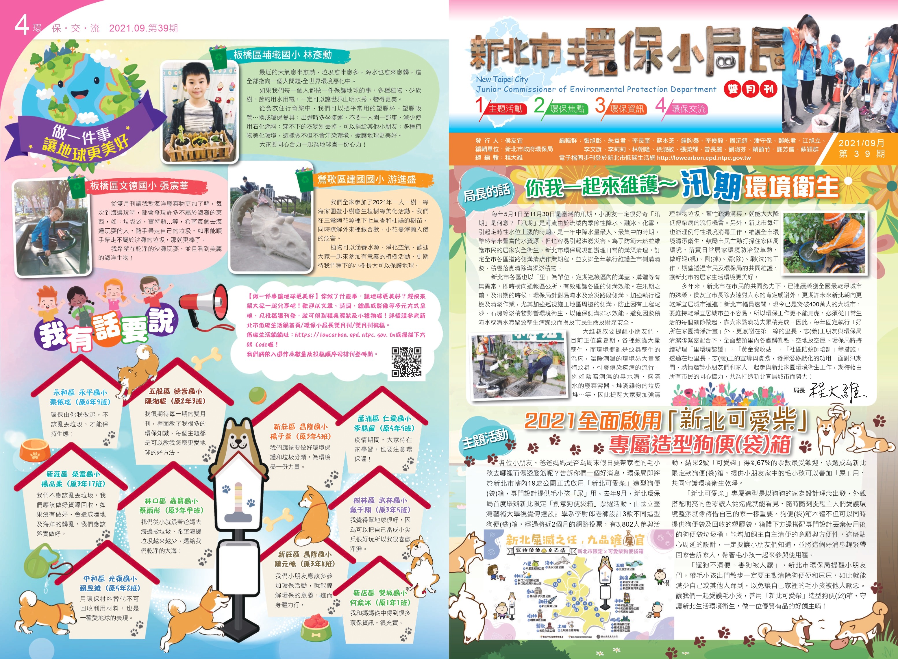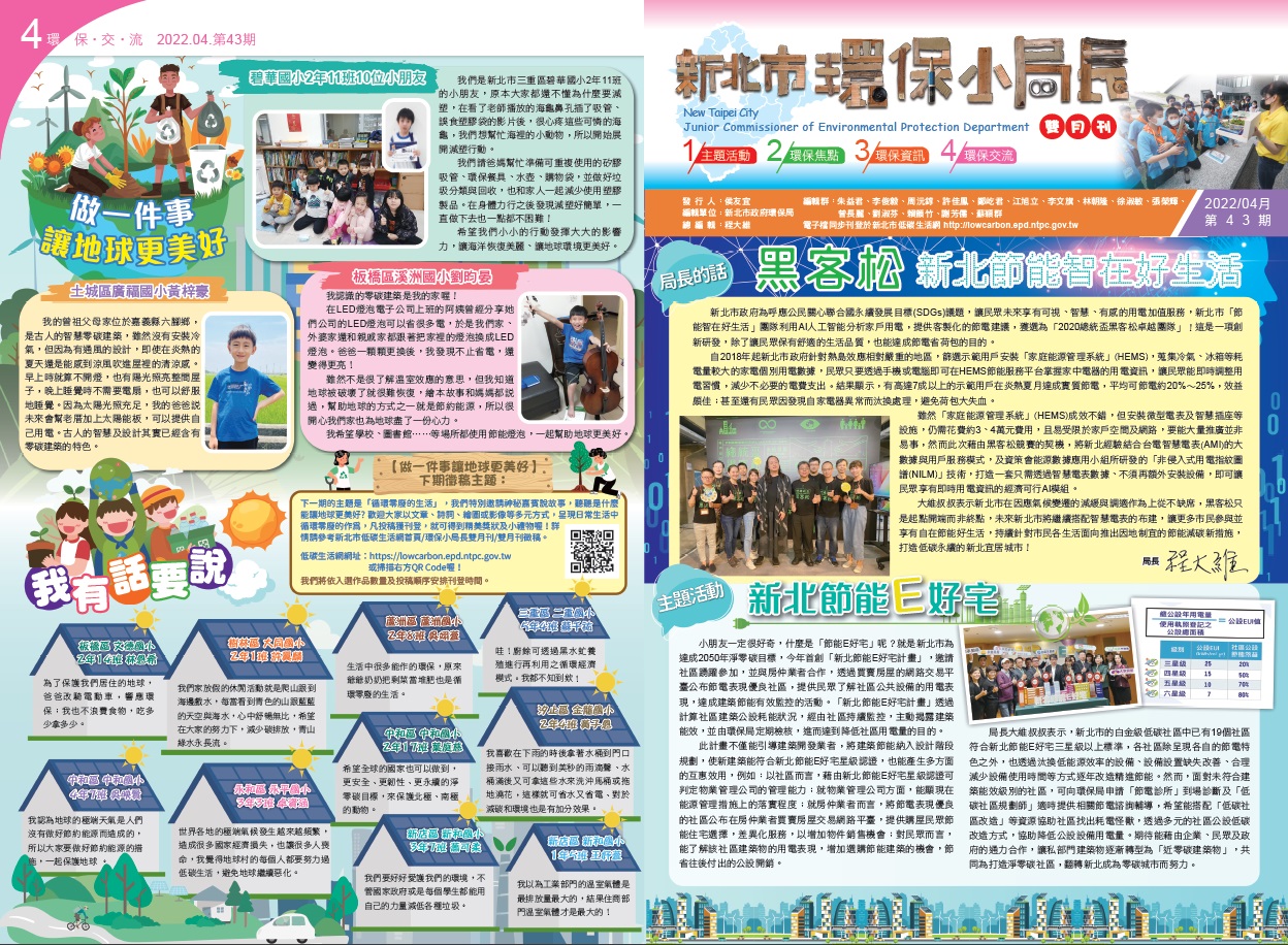 新北市環保局發行「環保小局長雙月刊」,由四個專欄(主題活動、環保焦點、環保資訊及環保交流)組成,報導時下最夯的環保議題及環保小局長們校內、校外的環保行動歷程,讓每一位學生、老師及家長也能共同參與這場難...