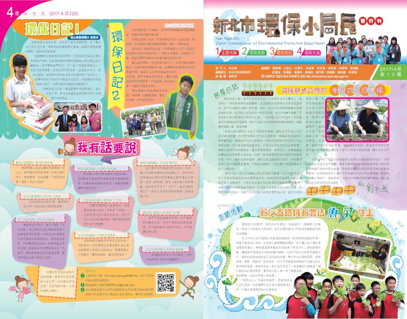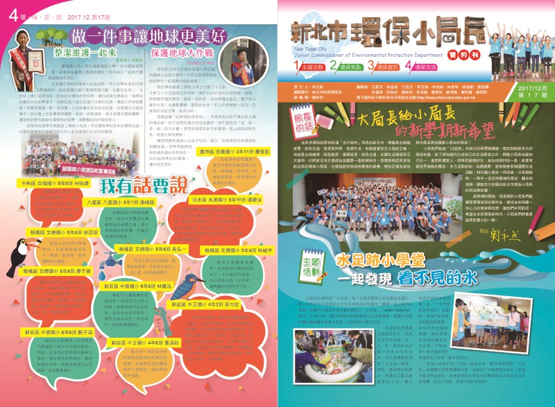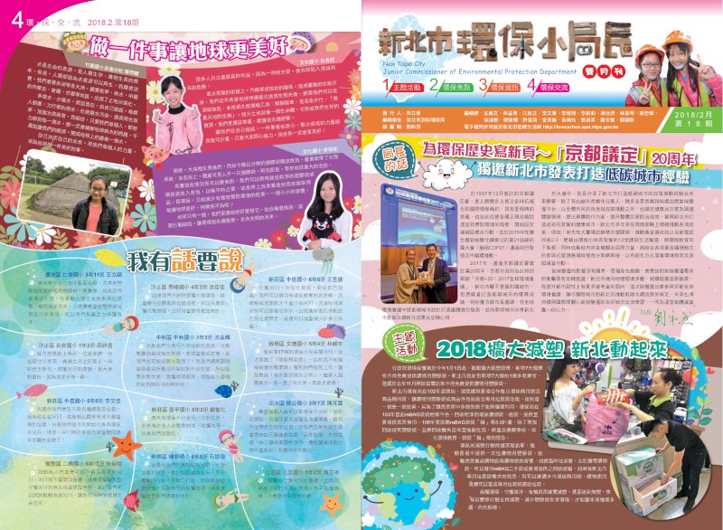 新北市環保局發行「環保小局長雙月刊」,由四個專欄(主題活動、環保焦點、環保資訊及環保交流)組成,報導時下最夯的環保議題及環保小局長們校內、校外的環保行動歷程,讓每一位學生、老師及家長也能共同參與這場難...