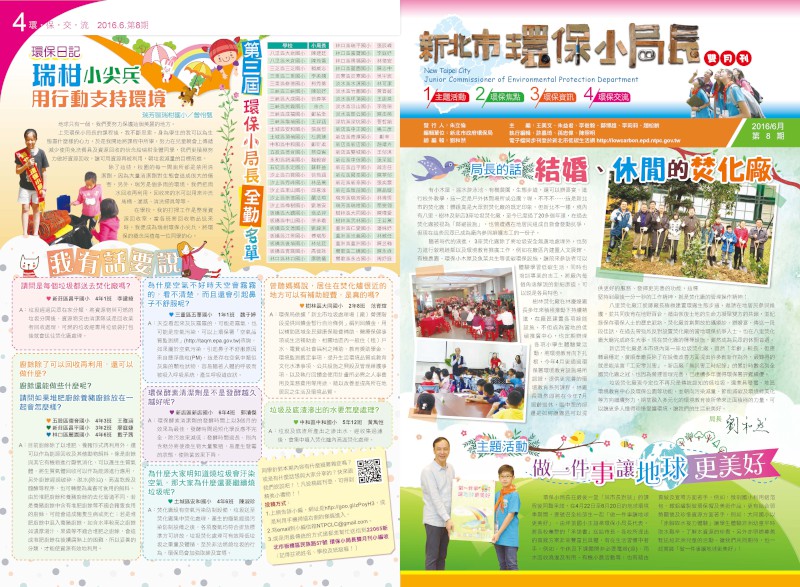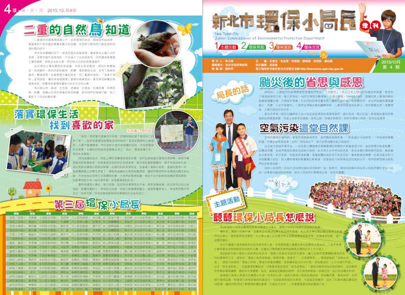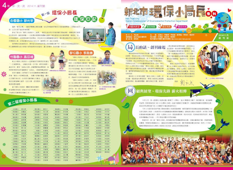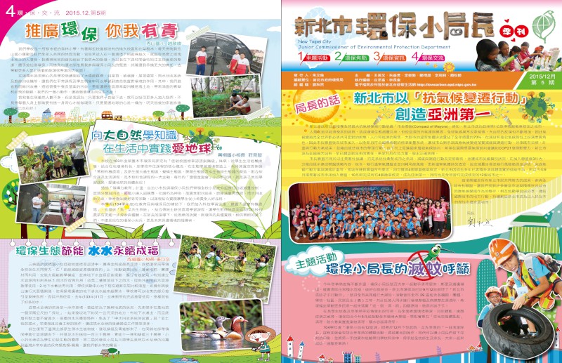 新北市環保局發行「環保小局長雙月刊」,由四個專欄(主題活動、環保焦點、環保資訊及環保交流)組成,報導時下最夯的環保議題及環保小局長們校內、校外的環保行動歷程,讓每一位學生、老師及家長也能共同參與這場難...