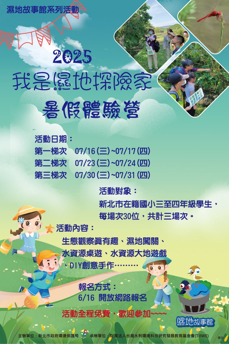 2025《我是濕地探險家》活動即將展開囉~~~ 《我是濕地探險家》濕地暨水資源體驗營隊活動,藉由水環境場域之昆蟲、動物及棲地的介紹,讓學員從營隊活動中認識物種及水環境與棲地關係,並且讓參與學...