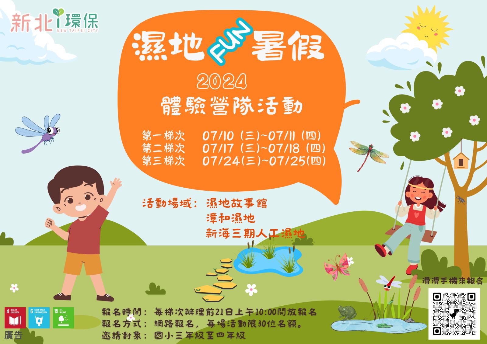 2024《濕地FUN暑假》活動即將展開囉~~~ 《濕地FUN暑假》濕地暨水資源體驗營隊活動,以教育、保育、復育等方式呈現濕地多樣面貌,一同認識水環境及水資源。 營隊活動過程中有濕地生態介紹...
