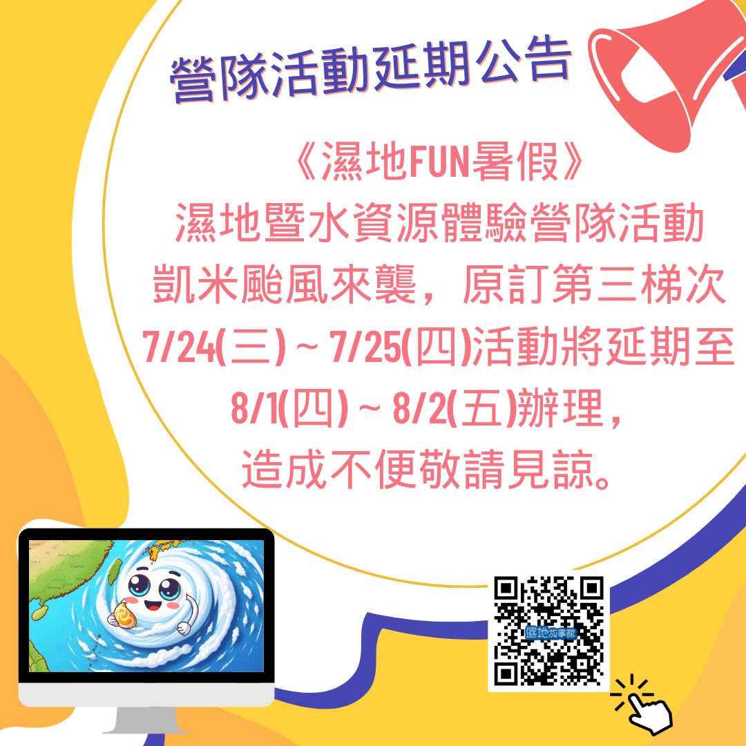 《濕地FUN暑假》體驗營隊 第三梯次活動變更公告