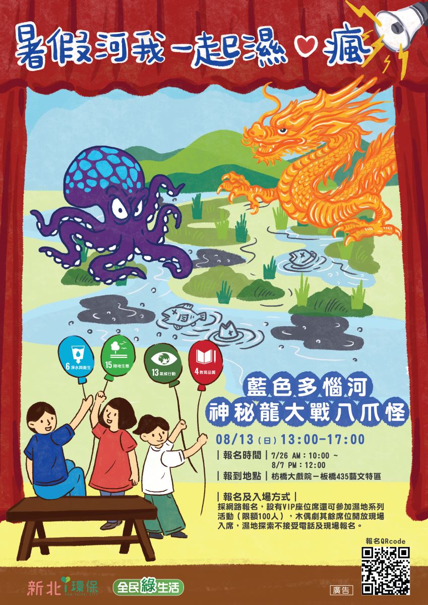 參加《暑假河我一起濕❤瘋》系列活動,我們用木偶劇改編真實故事讓大家了解守護河川的重要,以及濕地「教育、保育、復育」一同認識水環境及水資源。除了活潑生動的木偶劇之外,也包含濕地故事館導覽及生態體驗,...
