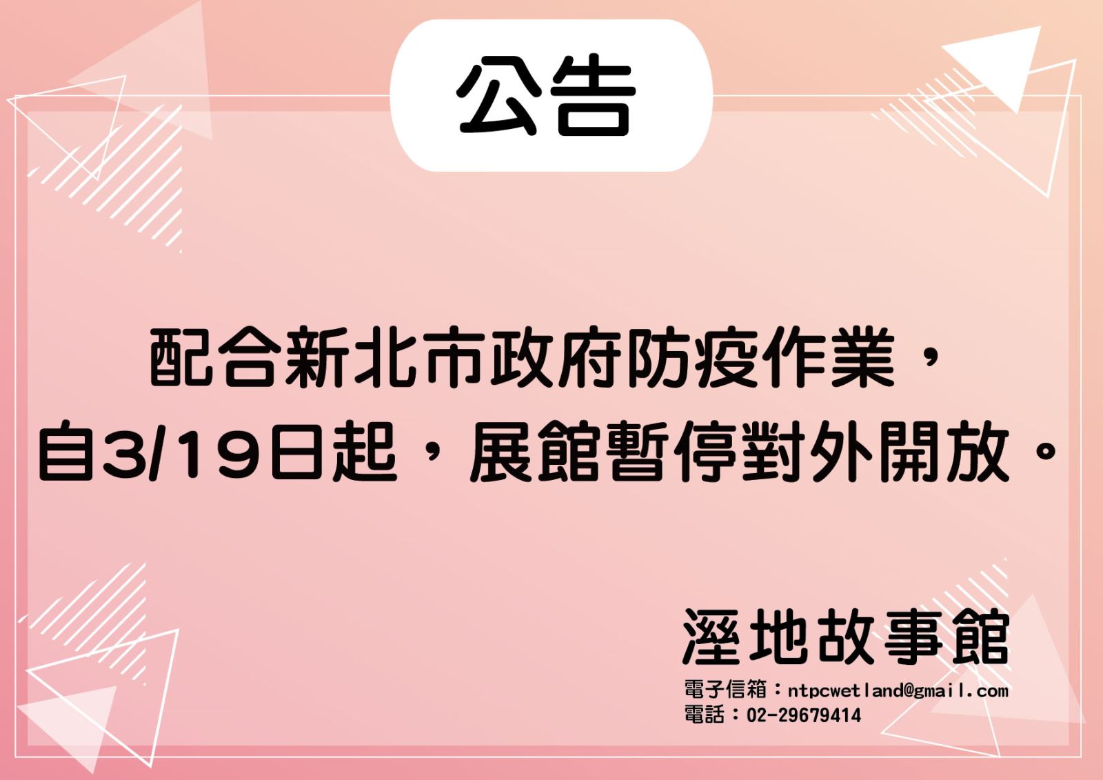 因應2019新型冠狀病毒肺炎(COVID-19)疫情影響(3月份環境教育活動暫停實施)